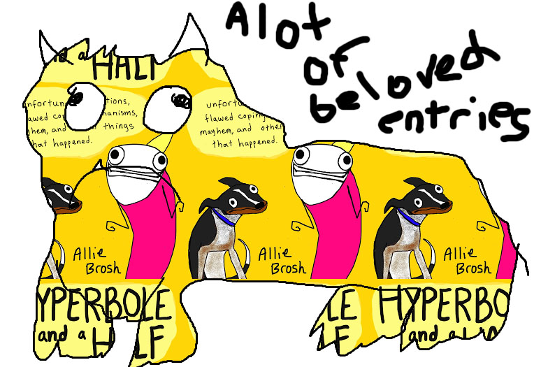 And I think that’s why we collectively love Hyperbole and a Half so much. It speaks to us in clear and simple terms that we are not alone in our feelings of restlessness, of depression, of wanting to eat more cake than is humanly healthy. It speaks to us in the ways that we want to be good people and yet find every possible scrap of proof that there is that to ourselves, we are not. It does it all with artfully artless illustrations that makes one scoff about how they could write a blog full of MS Paint pictures too, and then prove themselves wrong by appending their attempts to Cannonball Read reviews.