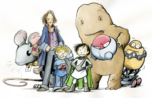 Zita combines humor, creative world-building, excellent artistry, and stories that will appeal to all ages. Three cheers for Ben Hatke for this great series, and also what is possibly the best author/family portrait of all times. Zita book #3 will be published in Spring 2014 and I fully intend to be hiding it from my kids so I can find out what happens next.