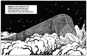 The Snowpiercer is a train one thousand and one carriages long and it never stops. After some kind of cataclysm has rendered the earth a frozen wasteland. Snowpiercer was originally built as a pleasure train, set up to run for 20 days without stopping, being completely self-sufficient. When the disaster happened, the last of humanity crowded on board and the train has been running ever since.