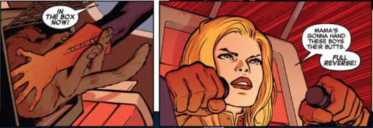 The basic arc of the story is that after an alien girl shows up in a life pod asking for help, Iron Man asks Captain Marvel to be the first emissary from the Avengers into space, job description: “Hanging with the Guardians of the Galaxy, bring intel back, and tag out with the next guy.” But bringing the alien girl home soon turns into a diplomatic nightmare, with Emperor J’Son of Spartax being a dick and stuff, and there’s this whole thing with a poison planet and Carol has to sass her way into everyone’s hearts. It’s beautiful.