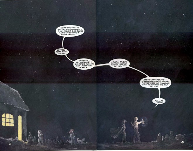 Random notes: The art throughout this book was by one artist and inker and it served this story well to have everything in the same vein. Kudos to Jill Thompson and Vince Locke. Also, how can you not love spending time with Delirium, with her icky green mouse ice cream and rainbow frogs?