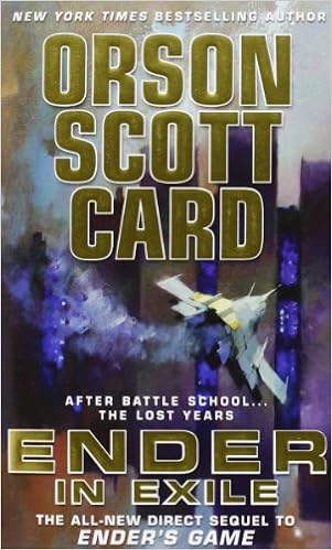 Orson Scott Card wrote Ender in Exile eleventh out of the twelve books in the Enderverse (so far), but it actually falls between Ender’s Game and Speaker for the Dead, and runs alongside the events of most of the Shadow Series. Card says he wrote it to fill in the gaps between the war ending on Eros, and Ender becoming the Speaker that we see in Speaker for the Dead, Xenocide and Children of the Mind. However, it seemed more to me like Card had a list of all the endings he needed to wrap up, so he addressed them all here. It makes for a rather disjointed novel, even though we do get a lot of plotlines resolved.