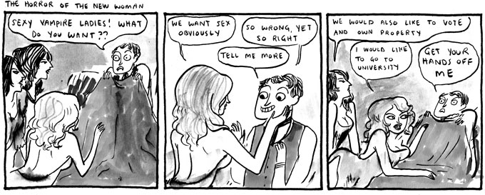 If you like any of these, you are likely to be a fan of Kate Beaton. The new book is much of the same, but some of the material didn’t work as well for me. I still laughed a lot, but there were a few too many topics that didn’t really feel as interesting to me. Which is still to say that it’s a great collection of comics and I don’t for a second regret getting the book in hardcover. I just wish there were more true classics, like this one: