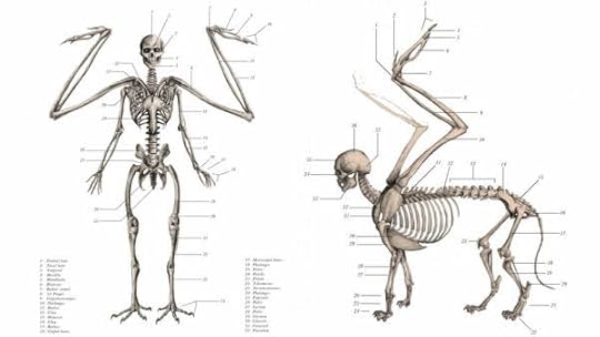The first third of this novel is a biography of the fictional Spencer Black — a (probably mad) (okay, definitely mad) scientist practicing “medicine” in the United States in the late 1800s. He starts out by doing experimental surgery to correct various birth defects in his patients. Eventually, he becomes obsessed with the idea that these deformities are actually evolutionary changes trying to manifest themselves. He links this into his theory that mythical creatures like the harpy, or the chimera, actually existed at one time as mutations of the people and animals we see now. We learn about his descent into madness, which involves a lot of sewing things to other things. The rest of the book consists of his incredibly detailed anatomical drawings of these mythical (or are they??) creatures’ skeletons, muscles, and so on. Really very impressive stuff.