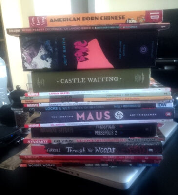 Fair warning, all. Over the next week or so (I can’t imagine it’s going to take me that much longer), I aim to read ALL the comic book trades and/or graphic novels that the husband and I own, and that I haven’t gotten round to reading. Actually, in all honesty, it’s not all of them, we have a ton of Hellblazer and Jack Kirby comics and all manner of things my husband owns that I have little to NO interest in, but there are 18 books in the pile of books I have promised myself I was going to read (some that I’ve owned for years and years and years), but just never got round to. This is the summer when I tackle them all. Hence there will be quite a lot of reviews for comics and graphic novels to come. I’m not even doing this to bulk up my CBR tally, although it’s certainly not going to hurt. I will be reading them in alphabetical order, starting with American Born Chinese.