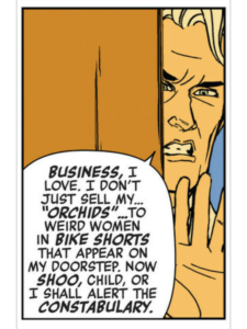 Like Clint, she helps people who are being screwed over – neighbors, reclusive billionaires and mysterious men. All the while she is facing off against Madam Masque , who seems to be behind, well, a lot. She and her in no way inconspicuous goons dressed as bell hops from the 40’s are everywhere.