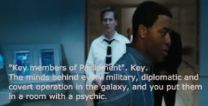 It’s not all great, of course (very little is). There’s a little too much going on. I hit what felt like the grand finale in the middle of the book, and then more obstacles kept cropping up, and more layers to the conspiracy, and it just got exhausting after a while. Plus, one of Cat’s few allies is convenient to a ridiculous degree, saving him just in the nick of time when Cat didn’t even know this new random character was on the planet, and then having all the convenient underworld connections Cat needed to get to the next stage of the investigation. Also, Cat makes foolish (and possibly deadly) decisions to sleep with the wrong woman not once but twice, proving that even if a woman wrote it, terrible sci-fi tropes can still exist (the female characters seem to only exist to amplify Cat’s pain).