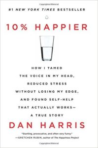 10% Happier is, like Shonda Rhimes’ Year of Yes or Elizabeth Gilbert’s Big Magic, part self-help book and part memoir. In fact, the first 80+ are essentially a chronicle of Dan Harris’s life as he rises through the ranks of broadcast journalism, becomes addicted to cocaine and ecstasy, and eventually has a panic attack on live television. It’s mildly entertaining, behind-the-curtain stuff, and it serves to frame his journey toward mindfulness and meditation, but it’s not especially useful if you’re hoping, as the extremely long subtitle suggests, to find a way to tame the voice in your head and reduce stress without losing your edge.
