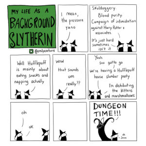 Another subversive idea that Rowling continues in Chamber of Secrets is that not all adults are trustworthy. In Sorcerer’s Stone, Quirrell was untrustworthy because he had been corrupted by Voldemort. Gilderoy Lockhart needs no external corruption. He is an entirely different kind of evil. Although he isn’t on the side of blood purity or world domination, he is such a narcissist that he is willing to harm children for his own benefit. The Dursleys, of course, will always be their own kind of lesson in intolerance.