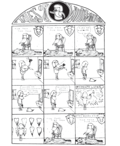 Here’s the Amazon Description: “From one of the bright new faces in the indie comix scene comes a collection of vignettes and stories about a solitary albeit gregarious woodsman with a loose grasp on his own personal history and that of the outside world. He forms relationships with his inanimate surroundings and muses to a dead audience, specifically his bear rug Phillippe. His own tales eventually become entangled with that of the legendary Paul Bunyan, and the two become indirectly intertwined, illuminating the discrepancy between the character of the storyteller and the character within his stories. The lives of both Paul and Pete encounter such things as the questionable origin of an ocean and the desire for preservation of everything from a fallen bird to an overused expression that has strayed a stone’s throw from its original meaning.”