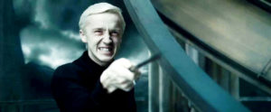 Anyway, Harry stays convinced the whole year Draco is up to something and eventually has his house-elf, Kreacher, and Dobby (a huge freaking part in the whole Potter universe drastically cut from the movies) tail him. He discovers Malfoy has been using the Room of Requirement for whatever his plan is but can’t get into the room to see for himself. Harry and Draco eventually duel in the bathroom (question why is Moaning Myrtle helping Draco help Voldemort when she was killed by Tim Riddle?) with Harry using a spell the HPB wrote specifically “for enemies” but Snap swoops in to save Draco and punish Harry.