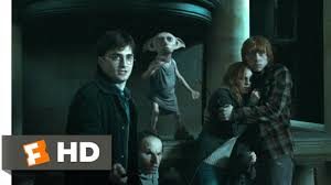 So Harry is a bit of an idiot and says Voldemort’s name, even after Ron explains that the name is jinxed, and they get caught. They wind up at Malfoy Manor where Ollivander, Dean Thomas, Luna Lovegood, and the goblin Griphook are being held captive. Bellatrix Lestrange goes apeshit when she sees the sword, believing it to be in her vault, and tortures Hermione for information. Harry makes a last ditch attempt for help by speaking to the mirror Sirius left him and to his surprise Dobby comes to the rescue. The group escapes to Shell Cottage, where Bill and Fleur live, but Dobby dies.