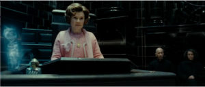 So our trio lands, after a bumpy encounter with two of Voldemort’s goons, at 12 Grimauld Place. I loved Kreacher’s turn around! After lengthy recon, all glossed over in the movie, the trio go to the Ministry of Magic in search of the horcrux locket Mundungus gave to Umbridge. The plan to sneak into the Ministry goes a bit awry when Ron polyjuices into a man whose wife has been taken into questioning for being Muggle born and Harry gets the brilliant idea to take Mad-Eye Moody’s eyes out of Umbridge’s office. I wished the movie had shown how the trio rescued a whole group of Muggle born wizards, but in the end our heroes get the horcrux. Unfortunately, a Death Eater grabs hold of Hermione which makes Grimauld Place no longer a safe hideout and they go on the run.