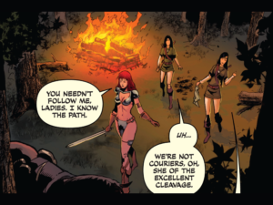 On her quest, Sonja marches through many social issues and slays oppressors, abusers, and the patriarchy with glee. Keep an eye out for when the bikini comes back and the ways that it is used.