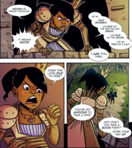 About a year ago, I asked what comics I should look for during my first comic book store shopping experience. ElCicco suggested Princeless, an Eisner Award nominated series published by the company her husband co-owns. At the time, I had a certain amount of dollars and a long list, so Princeless didn’t make it to the register. It’s been on my list ever since. I was delighted to find I could read Vol. 1 for free on ComiXology Unlimited. I highly recommend seeking it out.