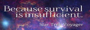 I can’t remember who said it, and I may be mashing many people’s words together, “when there is nothing external to give our life meaning, then all that matters is what we do.” Which is another way of saying “survival is insufficient.”