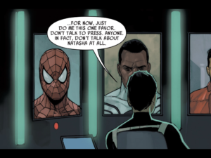 I found Tightly Tangled Thread problematic in a lot of ways. What was the point of Daredevil and The Punisher? Daredevil seemed to show up in order to moralize and show Natasha to be more comfortable with the gray areas. The Punisher made it look like Natasha doesn’t know when someone doesn’t have the information she wants. In Tightly Tangled Thread, Natasha comes off as barely competent and losing her grip on right and wrong. I was annoyed.
