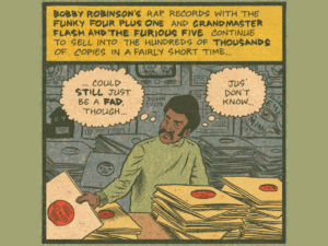 I found myself regularly going back and forth between the ComiXology app and YouTube to watch early Hip Hop videos. I also briefly watched that Kid Rock video with the intro sampling early Rap artists Busy Bee and the Sugar Hill Gang. It’s a testament to how fast Hip Hop’s influence spread, going from a mostly New York City street culture to being appropriated by a greasy-haired white doucheboy in 8 short years.