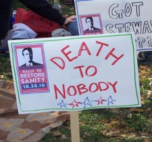 I did attend the Rally for Sanity and/or Fear. I was living in Northern Virginia at the time so it was easy to get downtown. This was not my sign. I was carrying a friend’s small child and not a sign. It was a good day. I just wish more people had walked away from the rally and done the work to really restore sanity. I include myself in that.