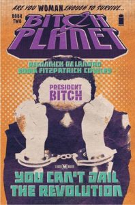 The other two things going on are the reveal that the former leader of the free world has been held at Bitch Planet for a very long time (I now need that backstory VERY badly), and that Kam’s sister Mo is being held on Bitch Planet as well in a separate facility for trans women. All three other main developments collide, and chaos ensues.