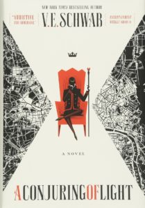 The third book, A Conjuring of Light, was probably my least favorite of the three. Although Kell and Delilah are back and having adventures, they were, for me, confusing adventures. Red London is under attack, but the nature of the attack wasn’t entirely clear to me. I think that’s because the magic in these books doesn’t work like most authors’ magic and so was hard for me to understand. I actually like that the magic in these books is a different kind of magic, but it did get a little muddy for me at times.