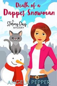 Stormy Day has, (for reasons not entirely mentioned in the text but including a broken engagement), returned to her small hometown after having lived and worked in The Big City (which big city is never mentioned and may be irrelevant). She’s got a rental property adjacent to her new home; she bought a small business, and she’s not yet adjusted to the ways of the local Coffee Shop. Her womanizing father, still living, is in the hospital for a hip replacement; his current girlfriend (Pamela) is somewhat unpleasant and very demanding. It’s all her fault that Stormy ends up discovering the next-door hoarding misanthrope’s body, which has been turned into the core of a snowman.