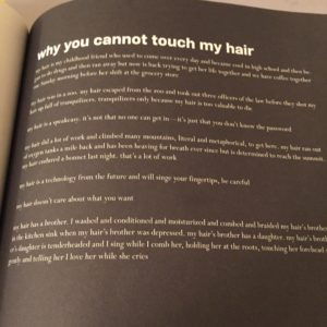 Both of these poems hit me right where I live. A rally cry for black girl magic. I don’t want to live in a world without Shea Moisture, but I would like to stop explaining why strangers can’t touch my hair.