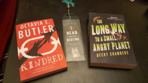 I am still not 100% sure if these books and the lovely bookmark that arrived in the mail are my CBR Book Exchange gifts, or if they’re part of the Pajiba Krampus gift exchange. However, since both feature on my huge TBR list and that was the one I sent to Katie (thanks again for organising everything), I am going to hope that these are Cannonball gifts. Because Book Depository won’t let you include gift notes, these books were anonymously sent to me – but I persuaded Katie to tell me who my gifter was and if these books are from you, Yesknopemaybe, then thank you so much! Both are books I’ve heard so many good things about and have wanted to read for a long time. We’ll see just how much time I get to read next year, once my tiny lodger makes his way into the world, but I am very happy to have these books on my shelf.