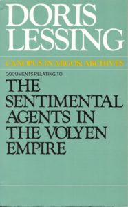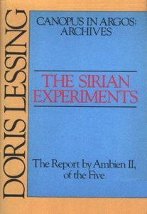 This is the first of five “space fiction” novels that Doris Lessing wrote in the late 1970s, early 1980s, and finally in the early 1990s. I call it “space fiction” because she calls it “space fiction” in the opening “Some Remarks” of the collection. They were published separately and then together, and then went out of print.