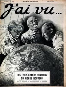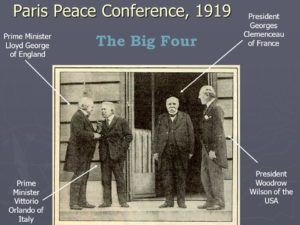 The United States, Great Britain, France, and occasionally Italy lead the Peace Conference. The personalities of Woodrow Wilson, David Lloyd George, Georges Clemenceau, and Vittorio Orlando dominated the conference and set the stage for conflicts that are still happening in the world. Wilson announced in his famous Fourteen Points speech in 1918, that he wanted a new diplomacy that would ensure a “fair and just peace.” He wanted to avoid the kind of secret treaties that had drawn the European countries into war. The Fourteen Points also put forth that principle of self determination should be used in the redrawing of boundaries of Europe and the territories of the former Austro- Hungarian Empire and the Ottoman Empire. The idea of self determination grew far beyond what Wilson intended and he expressed dismay at it’s interpretation world wide. Many peoples took it to mean that they should have a choice to govern themselves. Wilson meant more that some consideration should be given to their opinion when deciding who would govern them.