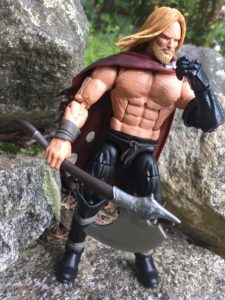 Thor the Unworthy is going by Odinson now. He’s drinking a lot. Since he can’t fly with his hammer, he is now flying on a goat. He has an axe. He’s still really strong and doesn’t need a helmet or spacesuit to survive the vacuum of space. He has accepted that Mjolnir has chosen a new Thor. Instead of forging a new identity for himself, he drinks, beats up trolls, and pines for his hammer. As soon as he hears about an alternate universe Mjolnir landing in Old Asgard, he goes running, because apparently his life isn’t worth living without a hammer.