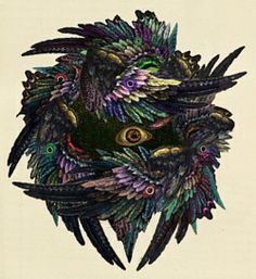 She reallllly wants to believe him, but you know, dragons aren’t real. Of course Charles Wallace isn’t lying, so they go meet a dragonesque creature. The drawing to the right is someone’s interpretation of him. His name is Progo (something), but they just call him Progo. I pictured him more warm and cuddly, even though they talk about all of his eyes and wings and fire in the book.