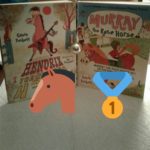 While putting away new reader copies, I tripped over this title (literally, I dropped it and then stepped on it….) called Hendrix the Rocking Horse. (Hendrix…rock…rocking horse…. get it?) I was a little cautious about it. The goofy illustrations of a horse (is that underwear on its head?) rocking out on stage was enough to give me pause. I then noticed Murray the Race Horse. Still the wonderfully goofy cover, but far more tame and traditional sounding. I wrong.