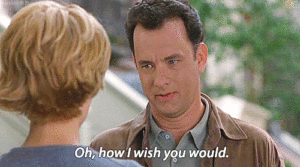 I wish the mystery man had ended up being the bartender, because Jack was a jerk and then went about wooing Noely in the most condescending manner. And in summary, I didn’t like You’ve Got Mail and thought that Joe Fox should have had his balls handed to him.