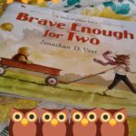 Brave Enough for Two (a Hoot and Olive book) has allusions to Winnie the Pooh. It is a soft, classically toned story written and illustrated by Jonathan D. Voss. This time, instead of Christopher Robin and Pooh, we have Olive and Hoot. Olive is the type of girl who likes adventures in books and Hoot is the type of stuffed owl who likes the “go out and have” adventures. And just like Pooh Bear and Christopher Robin, they go out into the world and have grand adventures together. Because even though Olive is nervous and sometimes afraid, Hoot is there to take care of her and will be brave enough for two. That is, until Hoot needs a brave friend, too, and Olive learns she is also brave enough for two.