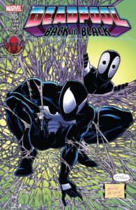 The second part of my Deadpool birthday swag, Back in Black is set between the moment that the alien symbiote, Venom, abandoned his Spidey-host and before he latched on to Eddie Brock, and spent a while driving Deadpool’s body around instead.