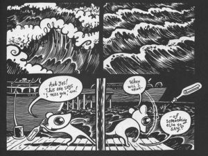 At the same time we get to peek at the friends left behind as Dandel everyday rides the city and collects glass bottles in which she puts letters for Chunky and sends them out to sea.