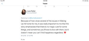 This was a lovely, comfy read after a weekend of intense emotions and anxiety attacks. Making Up is the third in Lucy Parker’s London Celebrities series. You don’t have to read Act Like It, but you should read Pretty Face first. You should read them both because they are delightful, but Pretty Face provides a lot of context.