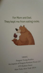 I know there are a ton of people who will love this book. Don’t Eat That by Drew Sheneman has great potential. There is a lot her to love: A sassy girl. A not to swift bear. The high jinks of a human teaching a bear how to be a bear…. However, for this reader, there was something missing. The girl is an interesting narrator, but never came across as likable to me. She is just too bossy and talks down to the bear to be relateable. Yet the bear saves the story by being a bear who a) has, yes, lived in a zoo and knows nothing about being a wild bear and b) is a bear and yes, would like to eat the girl.