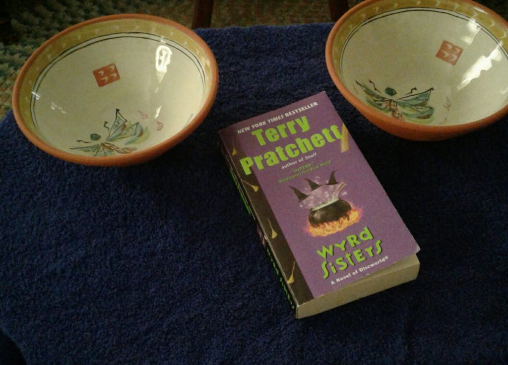 Wyrd Sisters has Shakespearian influences. The twists and turns (ghosts, lost princes, witches, and murdering relatives) are from beloved works of the Bard and Pratchett honors, parodies and turns on their heads each one.