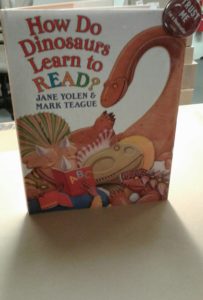 The dinosaurs of yore are back again with Jane Yolen’s and Mark Teague’s newest collaboration. How Do Dinosaurs Learn to Read? is much of what we have seen before, but this time about reading. Therefore, if you child likes the others, you will like this too!