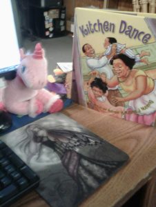 Kitchen Dance by Maurie J. Manning mixes in some Spanish (what the parents sing in or use for terms of endearment). Having a glossary (or pronunciation guide) would have been helpful. I am not sure when the book is set, but Manning’s illustrations have an “old school” feel that our family is in Harlem in the 1950s or early 1960s. Yet, it could be set in Texas, New York or half way around the world. This is due to the theme of family and love is universal. However, one also could bring up the fact the family is Latino and perhaps therefore are immigrants to this country. Or perhaps they still live in their native land. Yet, these are just a few ways to interpret the setting.