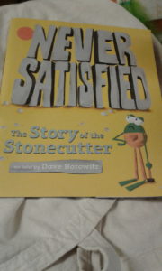 Never Satisfied: The Story of the Stonecutter by Dave Horowitz is a folktale about learning to be careful what you wish for. You just might get it. The Stonecutter is a good stonecutter, but it is hard work and is not satisfied with what he has. He thinks there must be something better. And there is! Being a business man sipping tea. But then he sees something else he wants even more….and after each wish he gets what he wants, but still is not satisfied. Not until he becomes a stone. After all, what can move a stone?