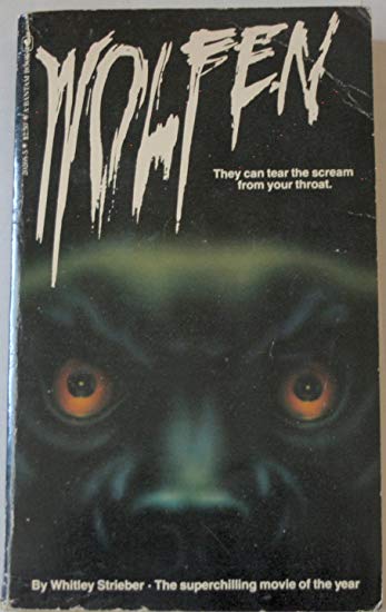 I’ve been in the mood for classic horror paperbacks lately. I recently read Whitley Strieber’s Hunger trilogy and liked the first book, so thought I’d try two more of his earlier works. His first book. The Wolfen, was written in 1978. It follows two New York City police officers, Rebecca Neff and George Wilson, who try to solve a seemingly unsolvable case — the brutal attack of two fellow officers. All the signs seem to point to an animal attack, but not just any ordinary animal. The book is fast-paced, and for the most part a great read. Strieber tries to force an uncomfortable and implausible romance between Neff and Wilson. This was handled much more smoothly and believably in the movie version of the book starring Albert Finney in 1981. That movie, although with some changes, like bringing in a Native American mystical element, helped underscore the book’s commentary on the state of the city — especially the burned-out Bronx and other abandoned areas and their homeless populations. Disposable people can easily become prey. But I really did enjoy the book, especially the sections where the reader gets to follow the wolf pack and get into their heads.