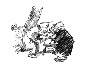 However, The Magic Pudding is still a product of its time. While there are no egregious cases of racial stereotyping – like what you see in TinTin in the Congo or Noddy – the original owner of the pudding, the Chinese chef Curry-and-Rice, is not portrayed in the most favourable light. And another character is referred to as ‘an unmitigated Jew’, although, I found that one of the Project Gutenberg versions of the book removed that line.