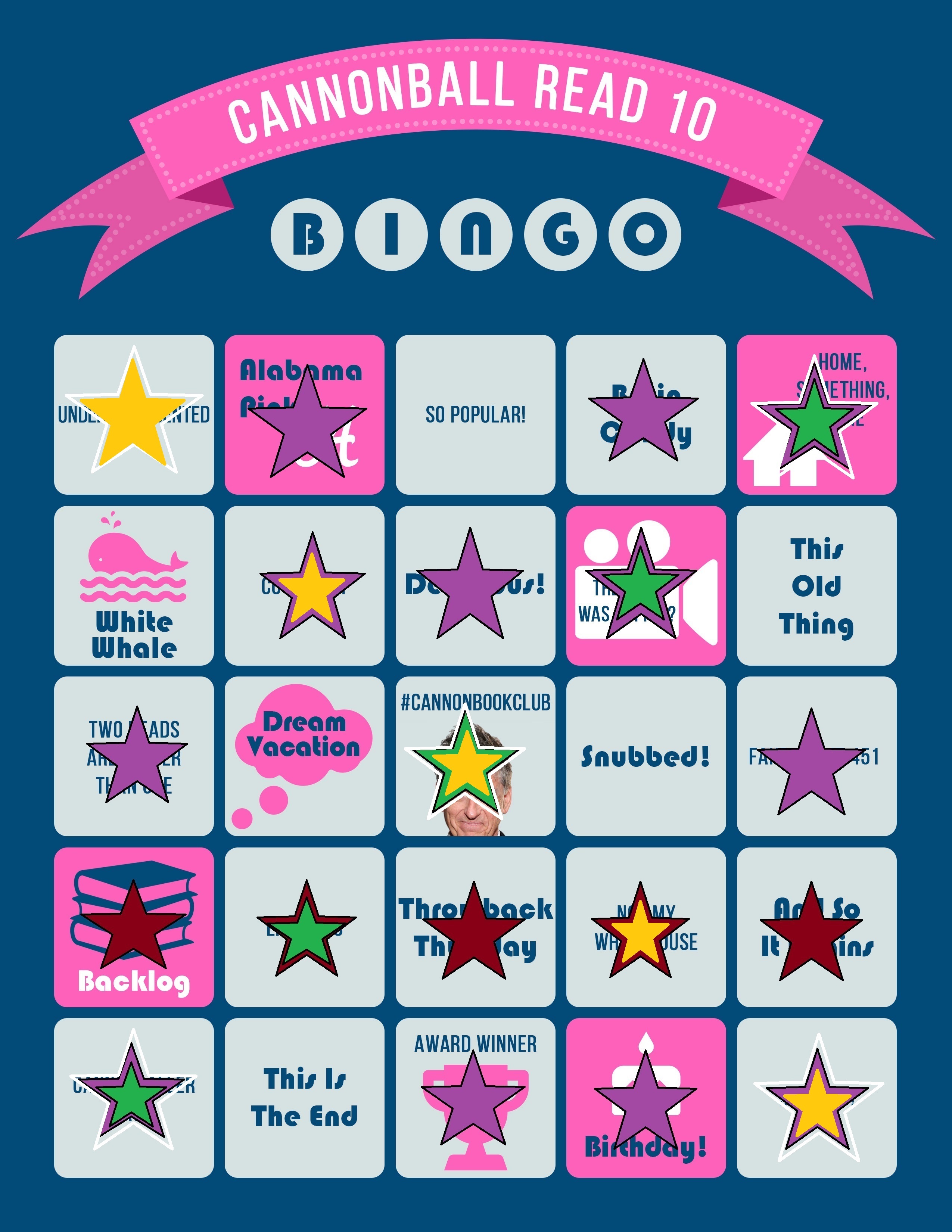 Bingo #4 (Four Corners + Center): Underrepresented, Home Something Home, #CannonBookClub, Cannonballer Says, So Shiny!