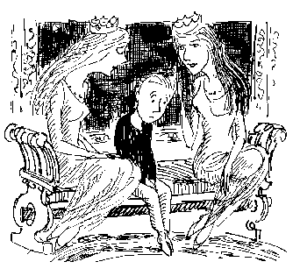 Here he gets lost in the doldrums, he meets Tock, the ticking watchdog and visits Dictionopolis. He visits the market where words are sold and lands himself in jail. Here he learns that not everything is as it seems, there is a dischord in the kingdom ever since the princesses Rhyme and Reason were banished to the Castle in the Air.