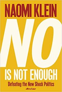 The very last bit of the book focuses on options for going forward, but even there it feels a little … insufficient. She talks about the Leap Manifesto she was a part of putting together in Canada, but there isn’t a lot of how to try to reproduce that in the US or even within a state in the US.