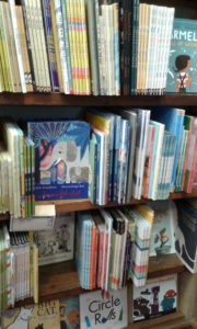 Animalphabet by Julia Donaldson is a very clever way of making an alphabet book. You start with a small “story” about an ant. And then find out what is bigger than an ant on the B page and so on throughout the book. There is none of that “A is for Ant or A = Ant. The End” to the style. The pages format could make it difficult for the very young to read it. You have hidden flaps that are not always obvious to the direction they open. Also, the younger crowd might be rough with the book. The pages are traditional paper and not a board book. But due to the story, the younger readers might not want to sit still for a short, but obvious, story and this might not be for them. It is for the slightly older reader or for the adult who collects alphabet books.