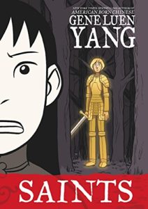 The end of Saints ties in with the end of Boxers in a touching and spiritually significant way. Gene Luen Yang is Catholic, and in all three of the books reviewed here, personal spirituality is key for his characters. They are all young people working toward understanding and fulfillment, and Yang shows that this is not easy for any of them. They make mistakes and do not get clear answers to their questions or easy resolutions to their problems. They are works in progress, and I think the fact that they must live with uncertainty, pain and hardship is important for young readers to see along with the message that there is the possibility of forgiveness and healing. Readers also get a fine introduction to a bit of Chinese culture and history through these vibrantly illustrated stories. These are wonderful novels that will resonate with readers young and old, and that could spark interesting discussions at home or in a classroom.